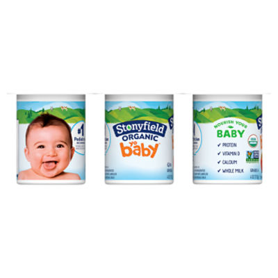 Stoneyfield Farms Stoneyfield Farms - Yo Baby. Whole Milk Organic Peach Pear 6M - Stonyfield Farm. Yo Baby Whole Milk Yogurt Vanilla Vanilla Stonyfield Farm 1 container 1000 Calories 130 g 4 g 4 g 0 g 0 mg 0 g 60 mg 130 g 0 g Report a problem with this food.